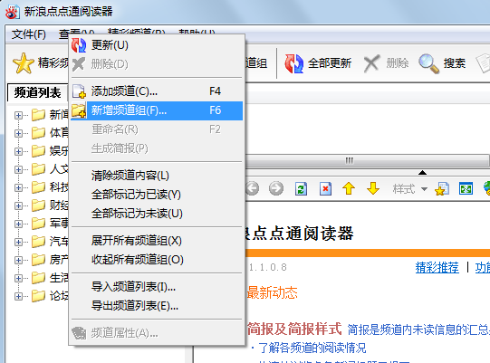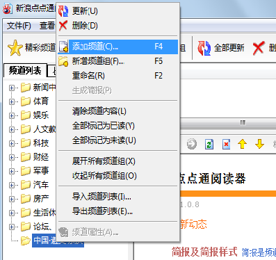 上直接点击右键,选中添加到“新浪点点通阅读器”,即可完成订阅。